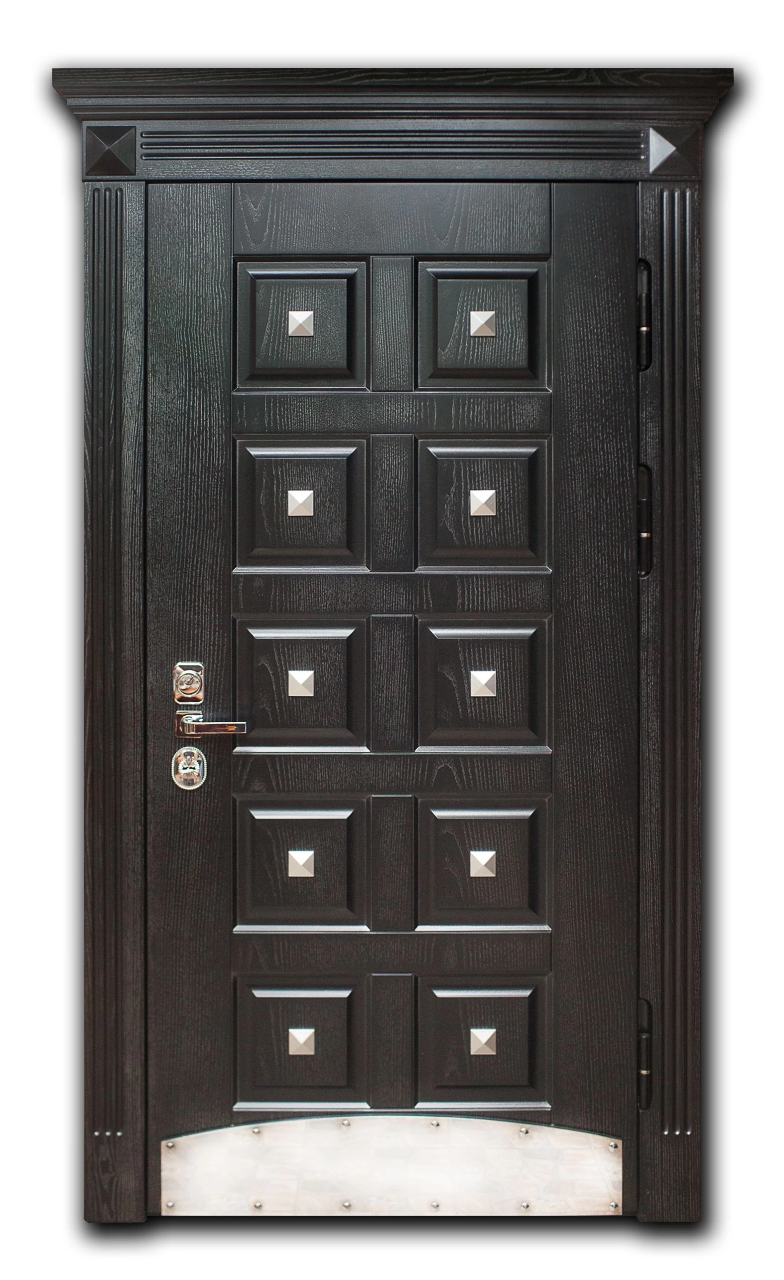 В основе конструкции элитных дверей в Алзамае - стальной лист толщиной не менее 2.0 мм, дверное полотно укреплено ребрами жёсткости (могут быть горизонтальными, вертикальными, комбинированными). При желании можно сделать дверь из стали 3.0 и даже 4.0 мм. Но тут есть ряд особенностей. Полотно и каркас такой двери невозможно сделать из гнутого профиля, конструкция только сварная. Ну и надо помнить, что двери из толстого металла очень тяжёлые, а следовательно, травмоопасные.