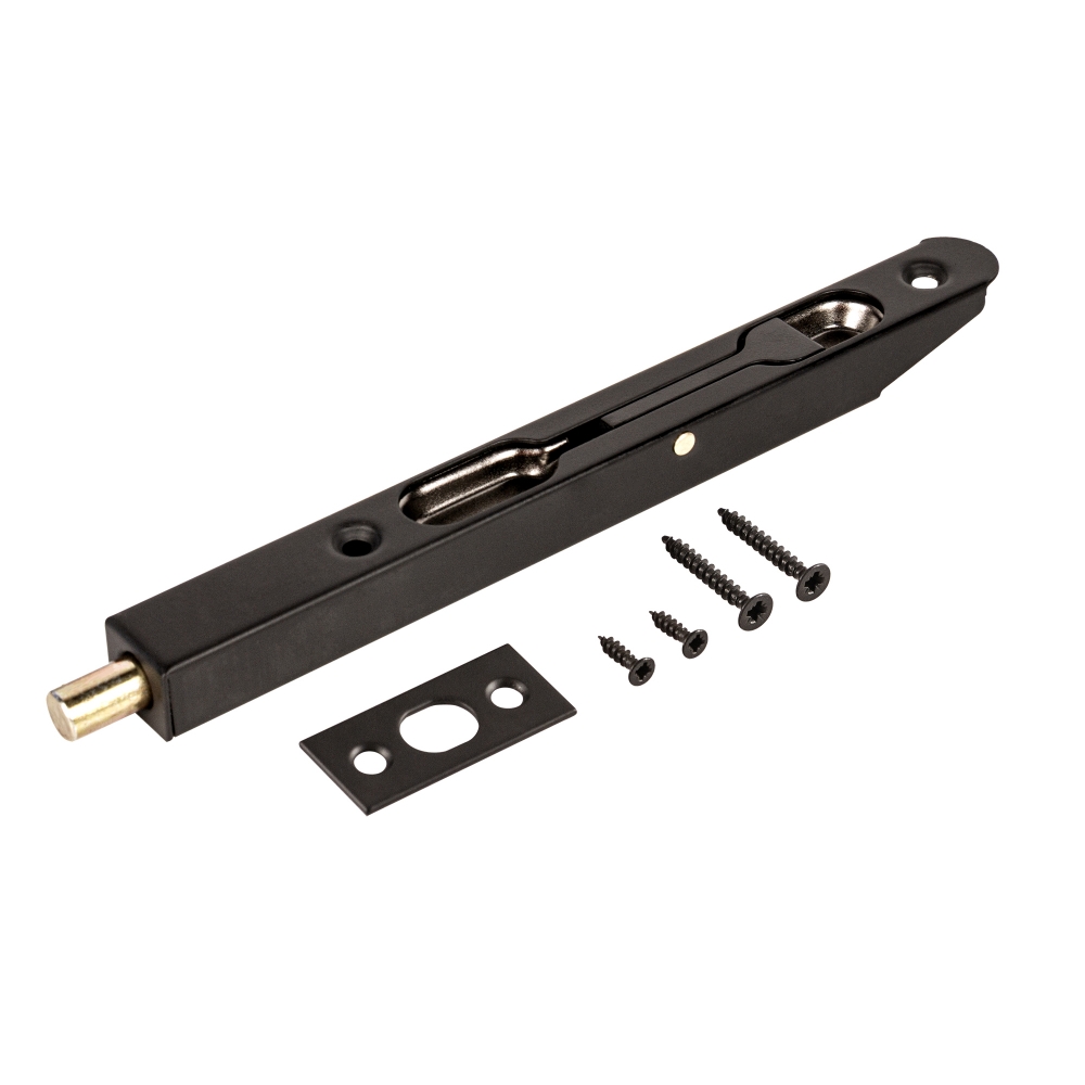 Диаметр ригеля: 12 мм. Длина упора: 160 мм, расстояние между монтажными отверстиями: 110 мм. Ответная планка и крепёж в комплекте.Со скругленным концом под врезку