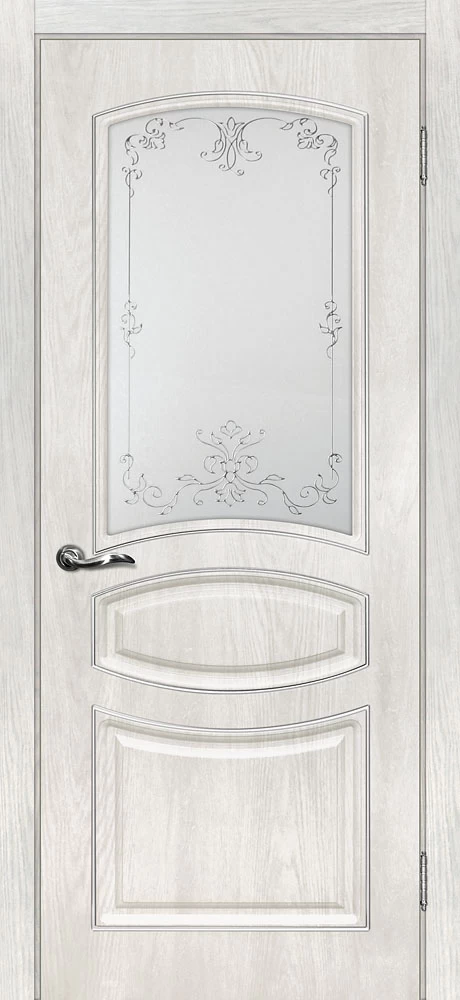 Качественная Межкомнатная дверь Сиена-5 Дуб жемчужный продается по цене 12 523 руб. за полотно. Доступные размеры 550x1900, 600x1900, 600x2000, 700x2000, 800x2000, 900x2000. Так же в наличии большой выбор комплектующих к данной модели, подходящих по цвету и фактуре.
