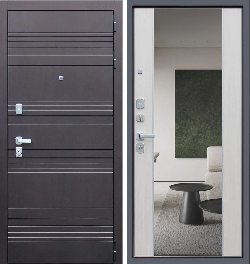 Надежная входная Дверь Дуэт с зеркалом премиум класса по цене 48 317 руб. Большая толщина стали защитит от проникновения в ваш дом, квартиру или коттедж. Используется очень качественная фурнитура: замки, цилиндры, ручки, защелки. Покрытие и отделка двери изготовлено под внимательным контролем производителя. Дверь имеет долгий срок службы и гарантию.