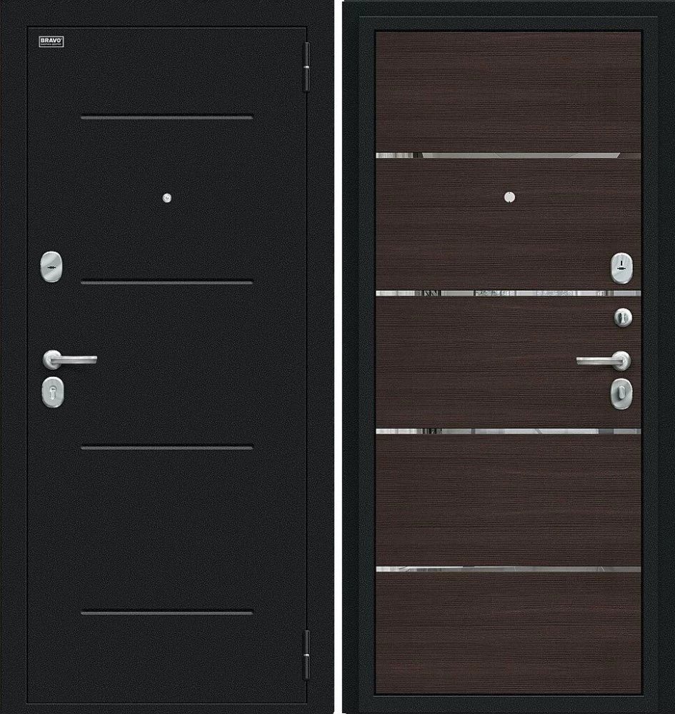 Надежная входная Дверь Браво Лайн Букле черное/Wenge Veralinga премиум класса по цене 31 137 руб. Большая толщина стали защитит от проникновения в ваш дом, квартиру или коттедж. Используется очень качественная фурнитура: замки, цилиндры, ручки, защелки. Покрытие и отделка двери изготовлено под внимательным контролем производителя. Дверь имеет долгий срок службы и гарантию.