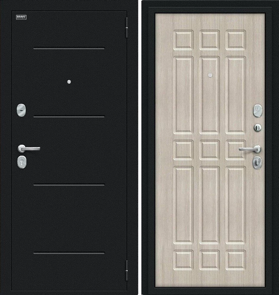 Надежная входная Дверь Браво Мило Букле черное/Cappuccino Veralinga премиум класса по цене 30 817 руб. Большая толщина стали защитит от проникновения в ваш дом, квартиру или коттедж. Используется очень качественная фурнитура: замки, цилиндры, ручки, защелки. Покрытие и отделка двери изготовлено под внимательным контролем производителя. Дверь имеет долгий срок службы и гарантию.