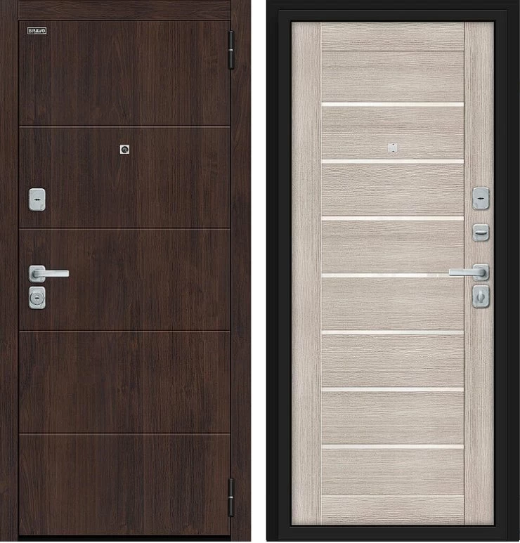 Надежная входная Дверь Браво Прайм/BChrome Almon/Cappuccino Melinga премиум класса по цене 40 917 руб. Большая толщина стали защитит от проникновения в ваш дом, квартиру или коттедж. Используется очень качественная фурнитура: замки, цилиндры, ручки, защелки. Покрытие и отделка двери изготовлено под внимательным контролем производителя. Дверь имеет долгий срок службы и гарантию.
