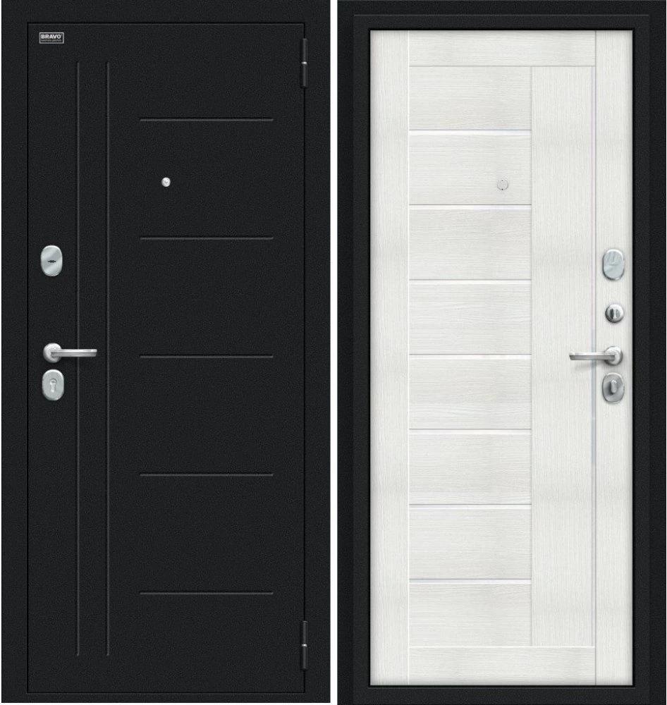 Надежная входная Дверь Браво Проф Букле черное/Bianco Veralinga премиум класса по цене 34 017 руб. Большая толщина стали защитит от проникновения в ваш дом, квартиру или коттедж. Используется очень качественная фурнитура: замки, цилиндры, ручки, защелки. Покрытие и отделка двери изготовлено под внимательным контролем производителя. Дверь имеет долгий срок службы и гарантию.