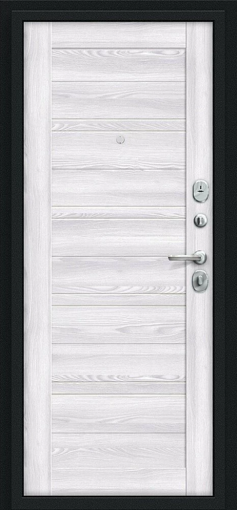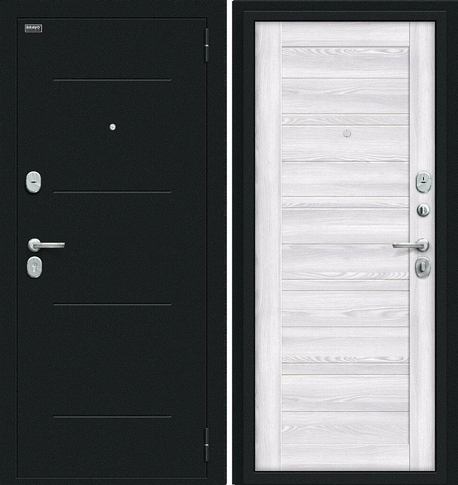 Надежная входная Дверь Браво Сити Kale Букле черное/Riviera Ice премиум класса по цене 36 567 руб. Большая толщина стали защитит от проникновения в ваш дом, квартиру или коттедж. Используется очень качественная фурнитура: замки, цилиндры, ручки, защелки. Покрытие и отделка двери изготовлено под внимательным контролем производителя. Дверь имеет долгий срок службы и гарантию.