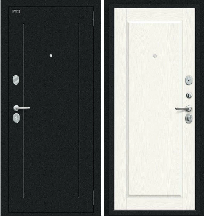 Надежная входная Дверь Браво Сьют Kale Букле черное White Wood премиум класса по цене 37 537 руб. Большая толщина стали защитит от проникновения в ваш дом, квартиру или коттедж. Используется очень качественная фурнитура: замки, цилиндры, ручки, защелки. Покрытие и отделка двери изготовлено под внимательным контролем производителя. Дверь имеет долгий срок службы и гарантию.