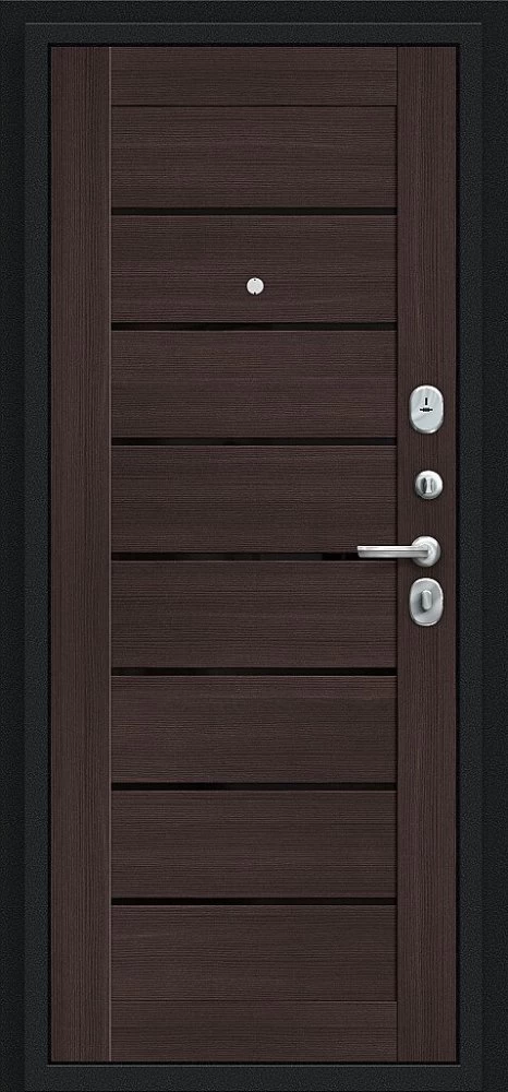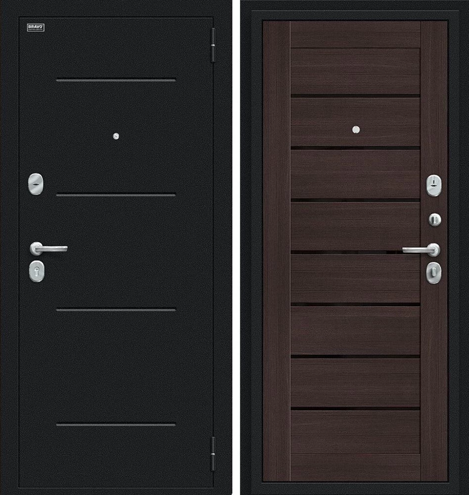 Надежная входная Дверь Браво Техно Букле черное/Wenge Veralinga премиум класса по цене 32 417 руб. Большая толщина стали защитит от проникновения в ваш дом, квартиру или коттедж. Используется очень качественная фурнитура: замки, цилиндры, ручки, защелки. Покрытие и отделка двери изготовлено под внимательным контролем производителя. Дверь имеет долгий срок службы и гарантию.