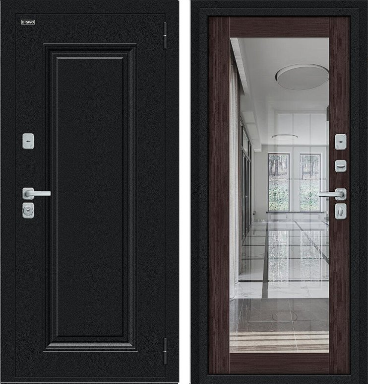 Дизайнерская входная Дверь Браво Thermo Флэш МФ/BChrome Букле черное/Wenge Melinga класса Люкс с несколькими листами стали, звукоизоляцией и теплоизоляцией. Утепленный короб и полотно защитят от сквозняков и шумов. Модель не только надежная, комфортная, защищенная и высочайшего качества, но и очень красивая! Будет отлично сочетаться с интерьером дома, квартиры или офиса. Сейчас действует выгодное предложение по цене: 58 017 руб.