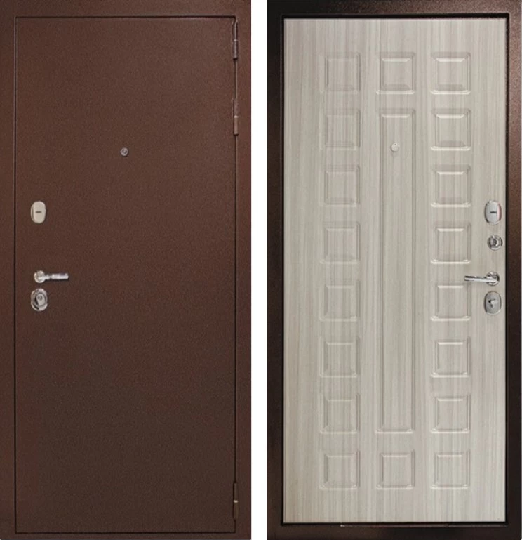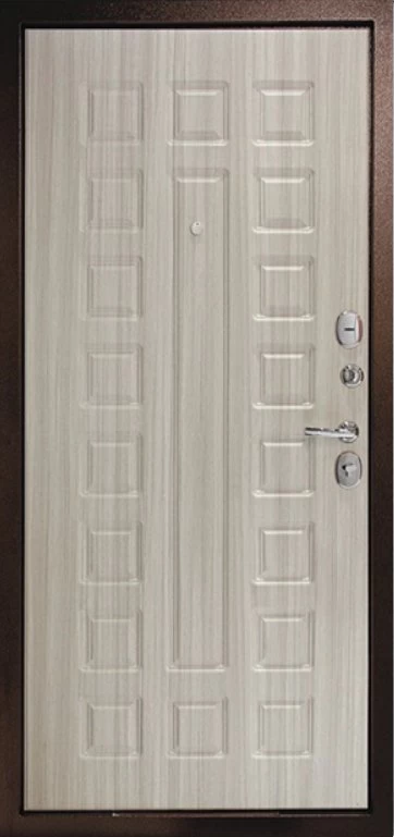 Надежная входная Дверь Рубикон 1 Медь Сандал белый премиум класса по цене 33 887 руб. Большая толщина стали защитит от проникновения в ваш дом, квартиру или коттедж. Используется очень качественная фурнитура: замки, цилиндры, ручки, защелки. Покрытие и отделка двери изготовлено под внимательным контролем производителя. Дверь имеет долгий срок службы и гарантию.