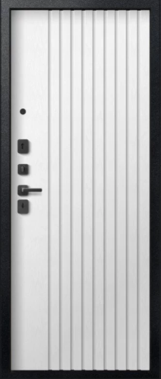 Надежная входная Дверь V-15 Черный муар + Бетон темный - Софт ясень белый премиум класса по цене 44 867 руб. Большая толщина стали защитит от проникновения в ваш дом, квартиру или коттедж. Используется очень качественная фурнитура: замки, цилиндры, ручки, защелки. Покрытие и отделка двери изготовлено под внимательным контролем производителя. Дверь имеет долгий срок службы и гарантию.
